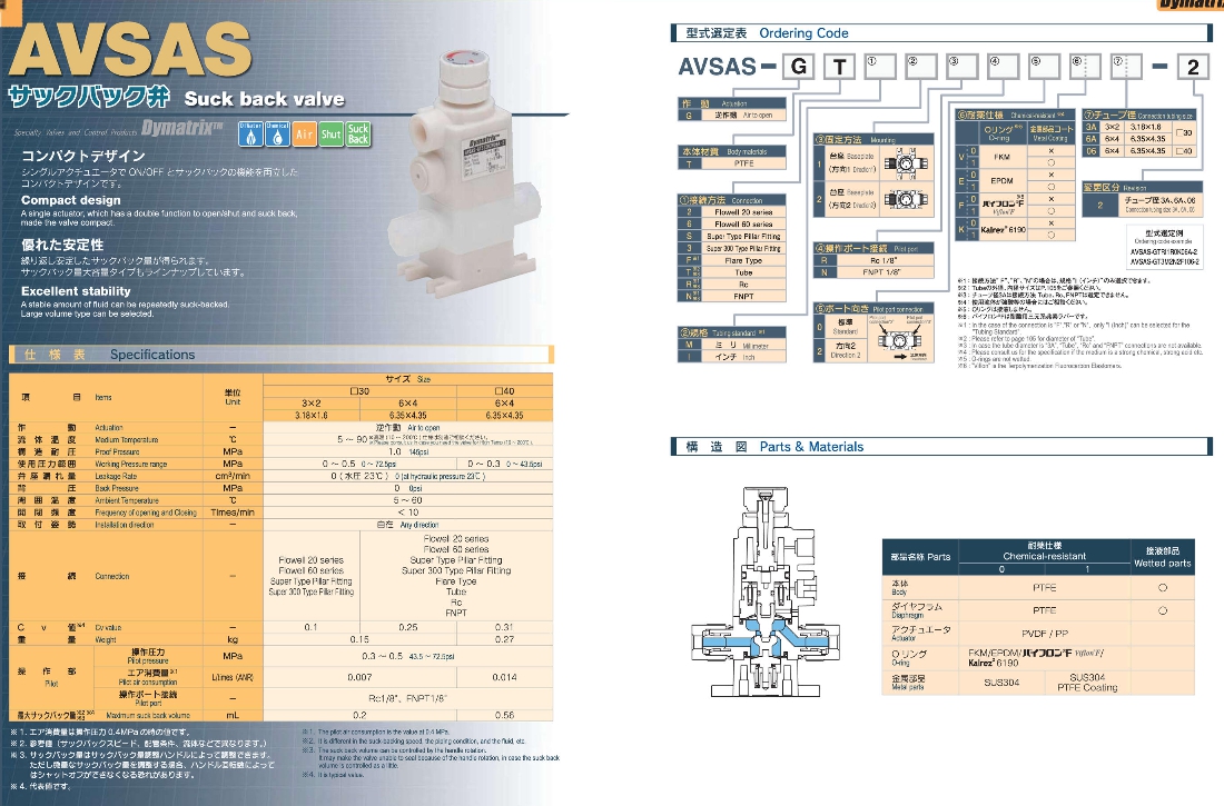 ASAHI YUKIZAI 다이매트릭스(고성능 플라스틱 밸브) 목록