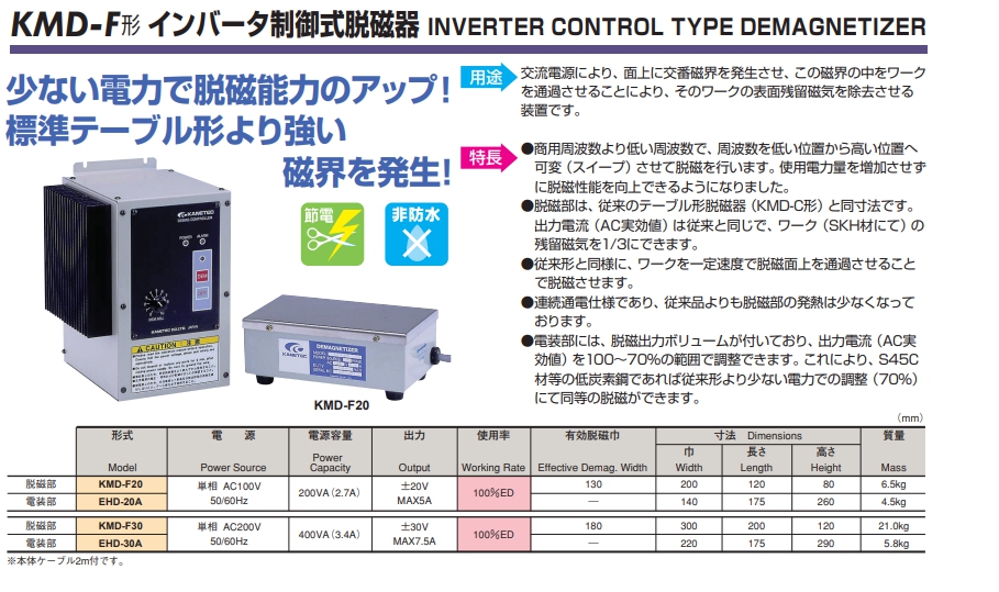테이블형 탈자기에 신모델이 라인업!! 강력한 자계로 탈자 효과 업! 【용도】 종래품 테이블형 탈자기와 같이, 자기를 띤 워크 등 탈자면 위를 통과시킴으로써, 잔류 자기를 제거 혹은 경감시키는 장치입니다 【특징】 ・삼상 교류 전원을 이용한 신구조 채용으로, 보다 강력한 자계를 실현. 지금까지 탈자기가 어려웠던 재질, ・베어링 조립품, 기어 등 특히 링 형상 워크에 위력을 발휘합니다. | ||||||||||||||||||||||||||||||