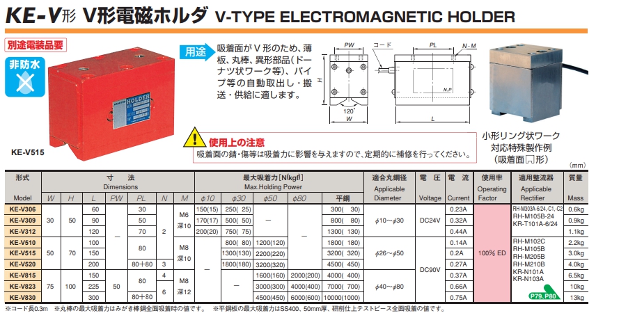 ![]() KE-V | 【용도】 흡착면이 V형이기 때문에, 박판, 환봉, 이형 부품(도넛 형상 워크 등), 파이프 등의 자동 취출·반송·공급에 적합합니다. |