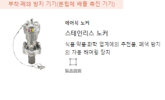 스테인리스 노커 시리즈는, 높은 설계 기준의 내구성과 심플한 구조로 거의 메인터넌스 프리로 사용할 수 있기 때문에, 불필요한 예비 부품의 매입도 필요 없습니다. 이 에어식 스테인리스 노커 시리즈는 오랜 납품 실적으로 고객에게는 고장이 거의 없고 유지 보수가 필요 없다고 기뻐하고 있습니다.