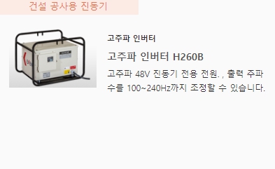출력 주파수를 100Hz~240Hz까지 노브를 돌리는 것으로 무단계로 조정할 수 있으므로, 고주파 진동 모터의 진동수를 조정하면서 콘크리트 타설하는 경우에 최적입니다.