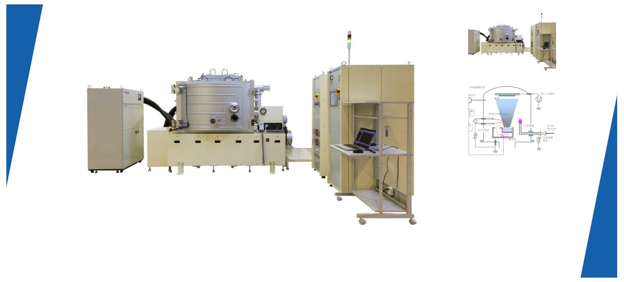 종래 CVD에서 밖에 실용화할 수 없었던 막종(후막 산화막·탄화막 등)을 PVD에 의해 실현한 신방식의 이온 플레이팅 장치입니다