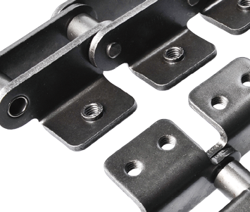 어태치먼트 구멍을 버링 가공하여 탭 가공한 체인입니다. 어태치먼트에의 설치에 필요한 너트가 불필요하고, 슬랫 등의 어태치먼트에의 설치가 간단하고 작업 시간을 단축할 수 있습니다.
