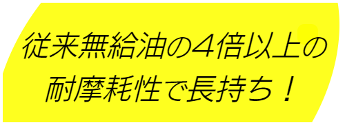 특수 처리를 실시한 ND셀브 체인은 기존의 무급유 체인에 비해 상온 영역에서 4배 이상의 내마모성이 향상되었습니다. 현재 사용하는 무급유 체인의 교체 시기를 더욱 연장하고 싶을 때에 최적입니다.